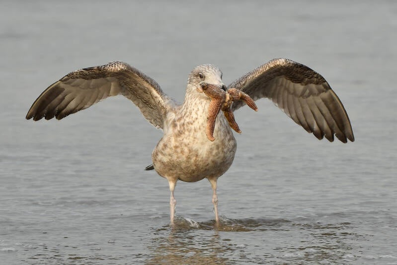 18-01-2019 Zeester met Zilvermeeuw op het Schev. strand