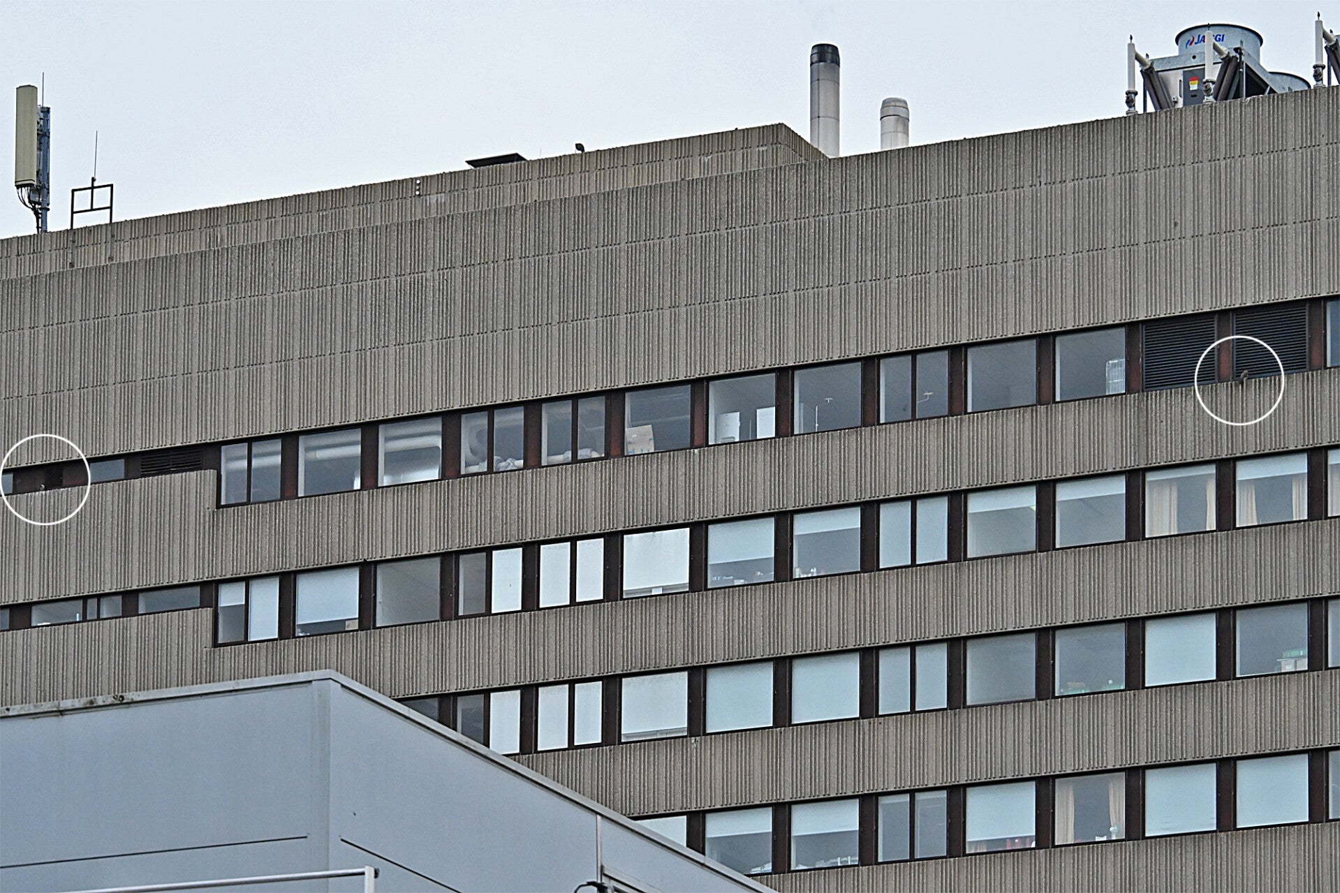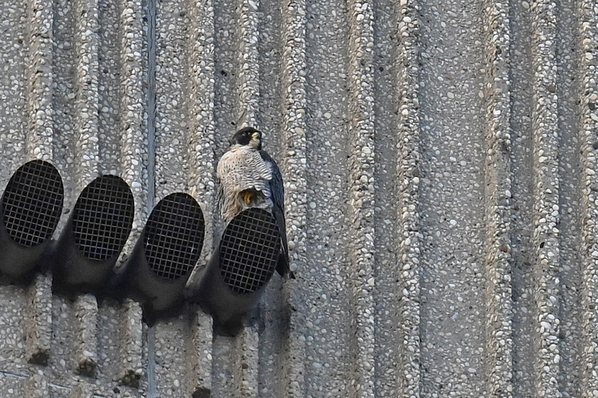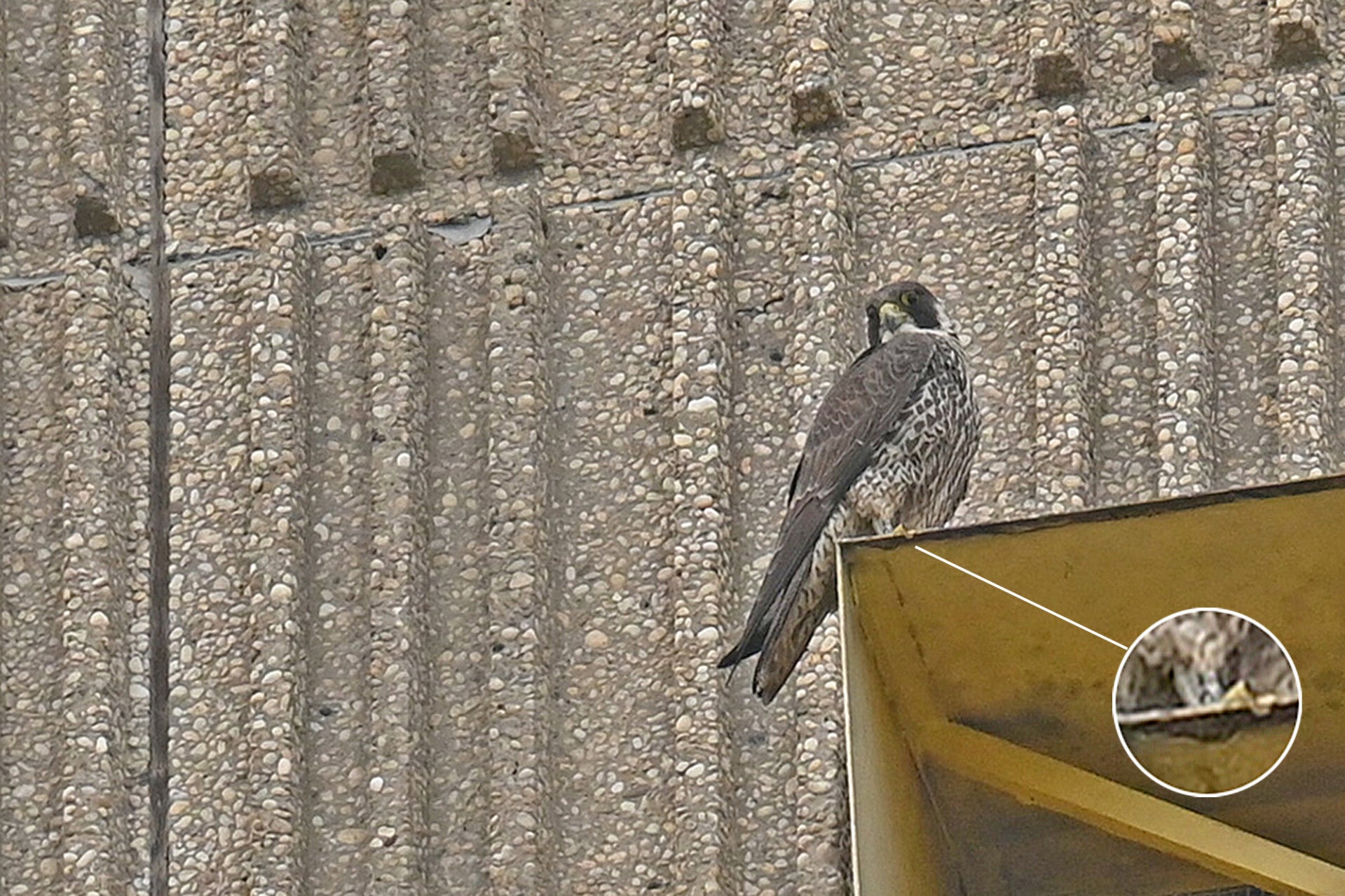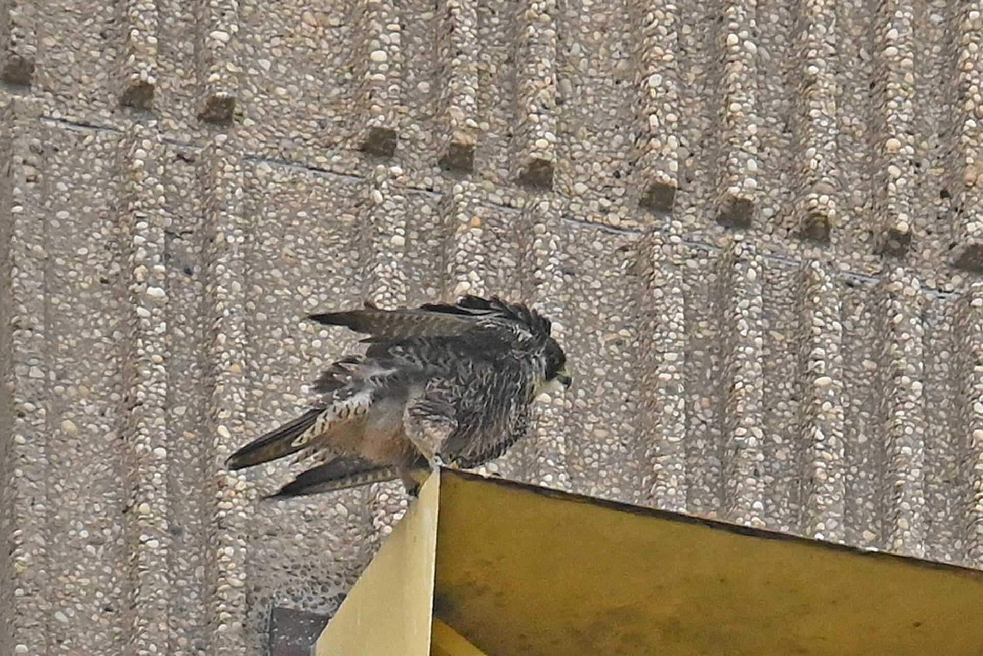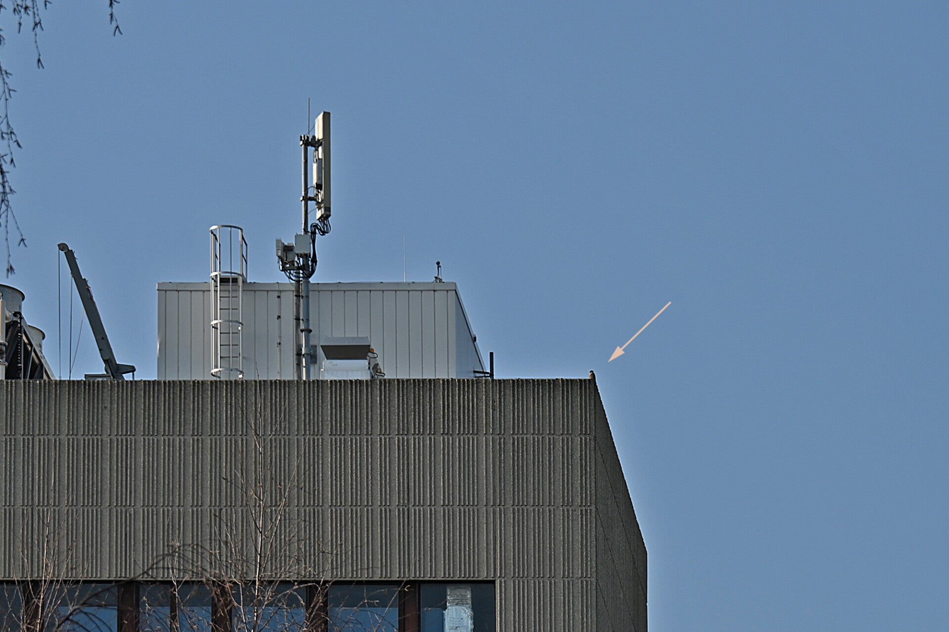 22-03-2026 Beide Valken op hoekpunten Noordkant v/h gebouw (rond 10:00 uur man links, vrouw rechts):