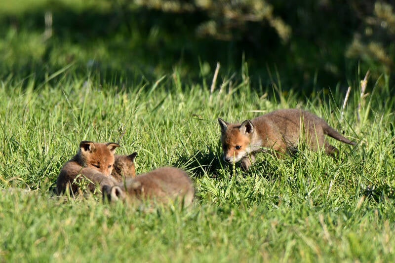 Regelmatig wandelen we een rondje op Lentevreugd, voormalige bollenvelden en onderdeel van het 'Hollands Duin' in Wassenaar. We schrijven vrijdag 10 mei 2019 als we oog in oog staan met een zevental jonge Vosjes. Een geweldig gezicht om de Vossenwelpen met elkaar te zien stoeien.